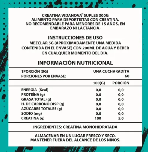 Potencia tu entrenamiento con la Creatina PRO Monohidratada Micronizada 300g de alta calidad de Vidanova® Suples.