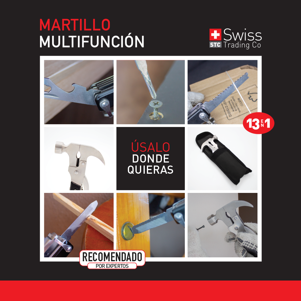 El nuevo Martillo Multifunción es la herramienta ideal para resolver todo tipo de problemas en casa, el trabajo o donde quiera que vayas. Su diseño único en acero inoxidable es muy duradero y resistente. Posee un tamaño perfecto para que puedas llevarlo a todos lados en su práctico estuche. Ahora con el Martillo Multifunción podrás trabajar con una sola herramienta.