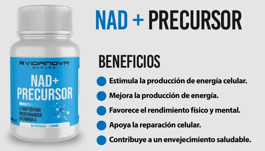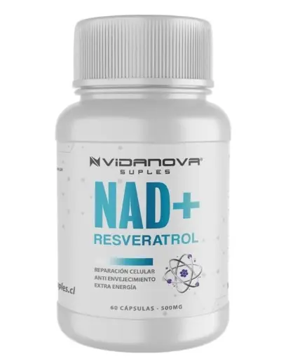 Potencia tu bienestar celular con una fórmula avanzada que combina NAD+ y Resveratrol en cada cápsula de 500 mg.